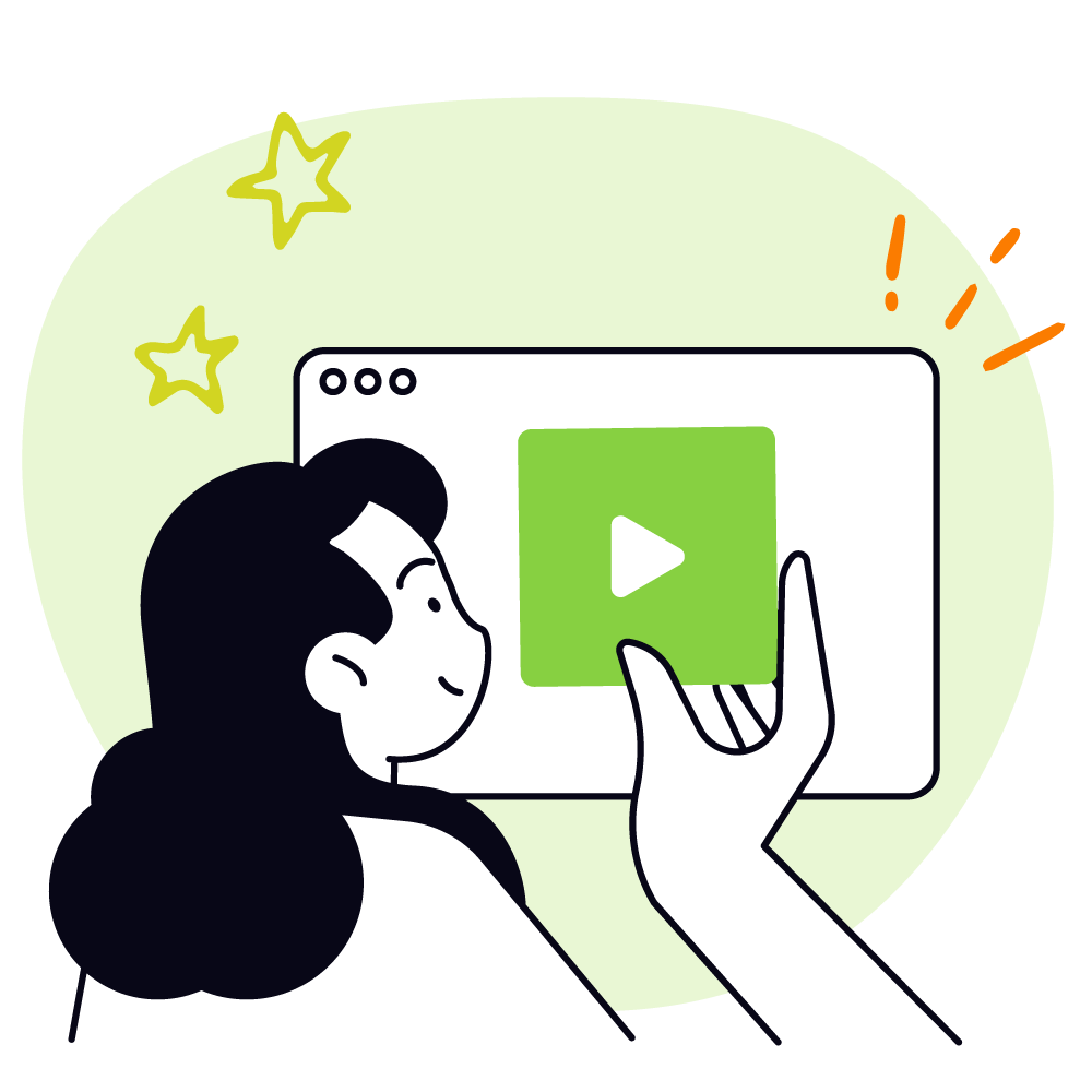A cartoon image of a woman pointing up at a lightbulb, a gear and a green tick, representing Marketing